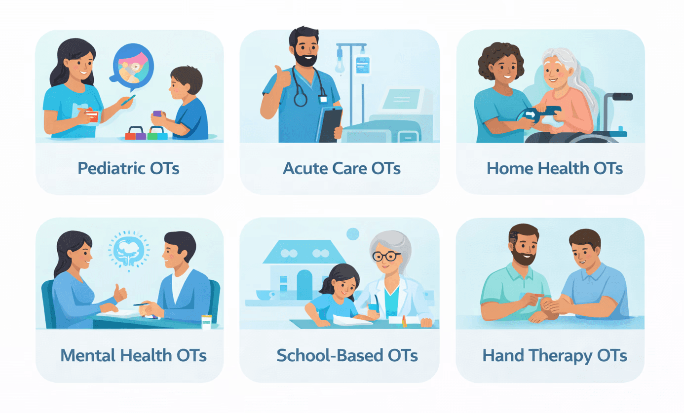 OTs and COTAs seeking flexible second caseloads, Retired or semi-retired clinicians who want part-time consulting or teletherapy, OTs transitioning from medical to school settings (we help with the onboarding process)